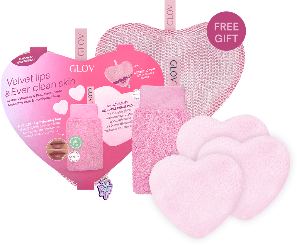 Dieses tolle Set von GLOV verleiht rechtzeitig zu Valentinstag unwiderstehlich weiche Lippen. Der kleine Handschuh für den Finger, peelt die Lippen sanft und hinterlässt ein angenehmes Gefühl, während die Abschminkpads Rückstände von Make-up schonend entfernen. Das Duo lässt sich ideal in der Waschmaschine reinigen und spart eine große Menge an Müll. Die tolle Kosmetiktasche ist gratis im Set enthalten.