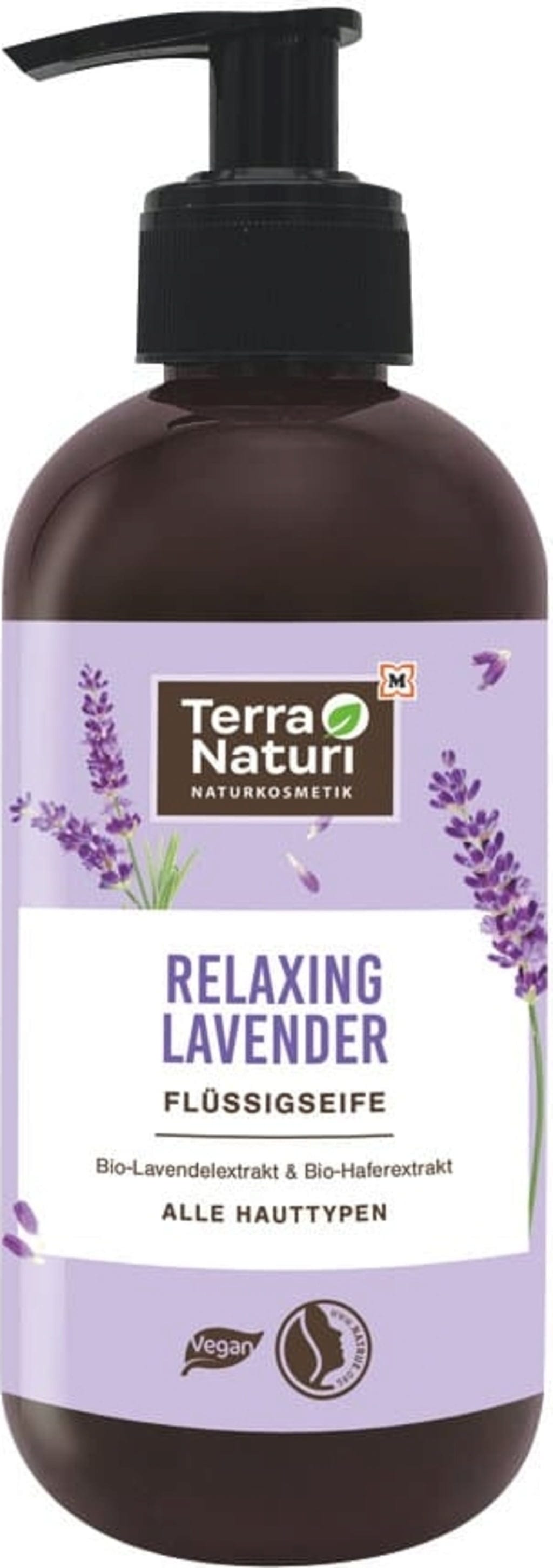 Sanfte Flüssigseife, angereichert mit Bio-Lavendel- und Bio-Haferextrakt – die RELAXING LAVENDER Flüssigseife von Terra Naturi reinigt deine Hände mit veganer und NaTrue-zertifizierter Formulierung.