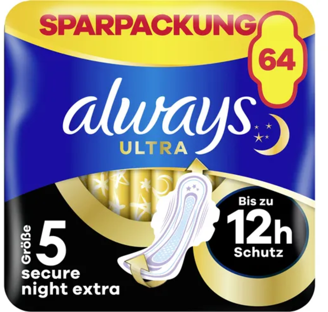 always Serviettes avec Ailettes "Ultra Secure Night Extra", Taille 5, 64 pièces