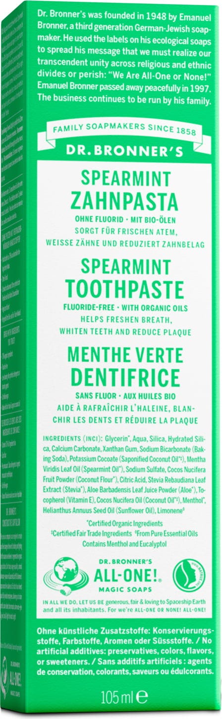 Dr. Bronner's Dentifrice Menthe Verte, 105 ml