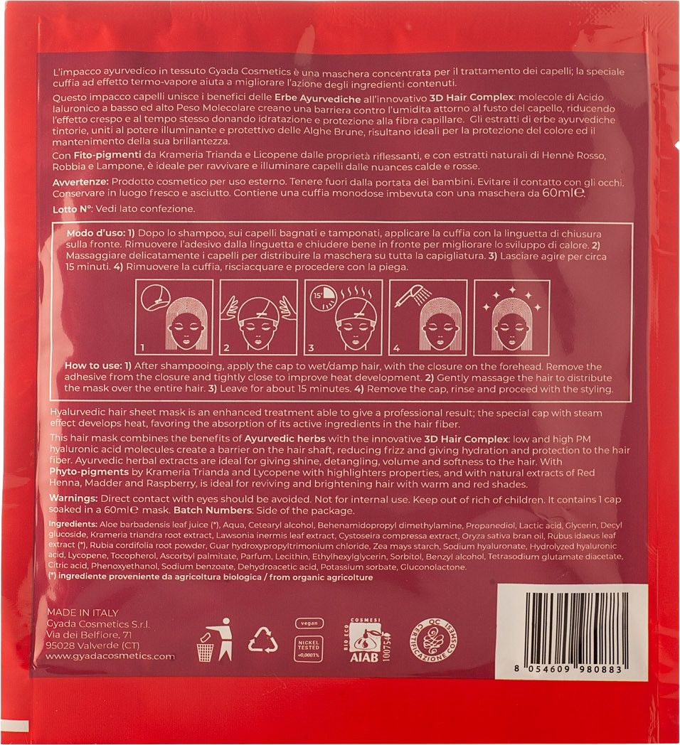 GYADA Cosmetics Masque Capillaire Éclat Couleur en Tissu "Hyalurvedic" - Red Hair, 60 ml