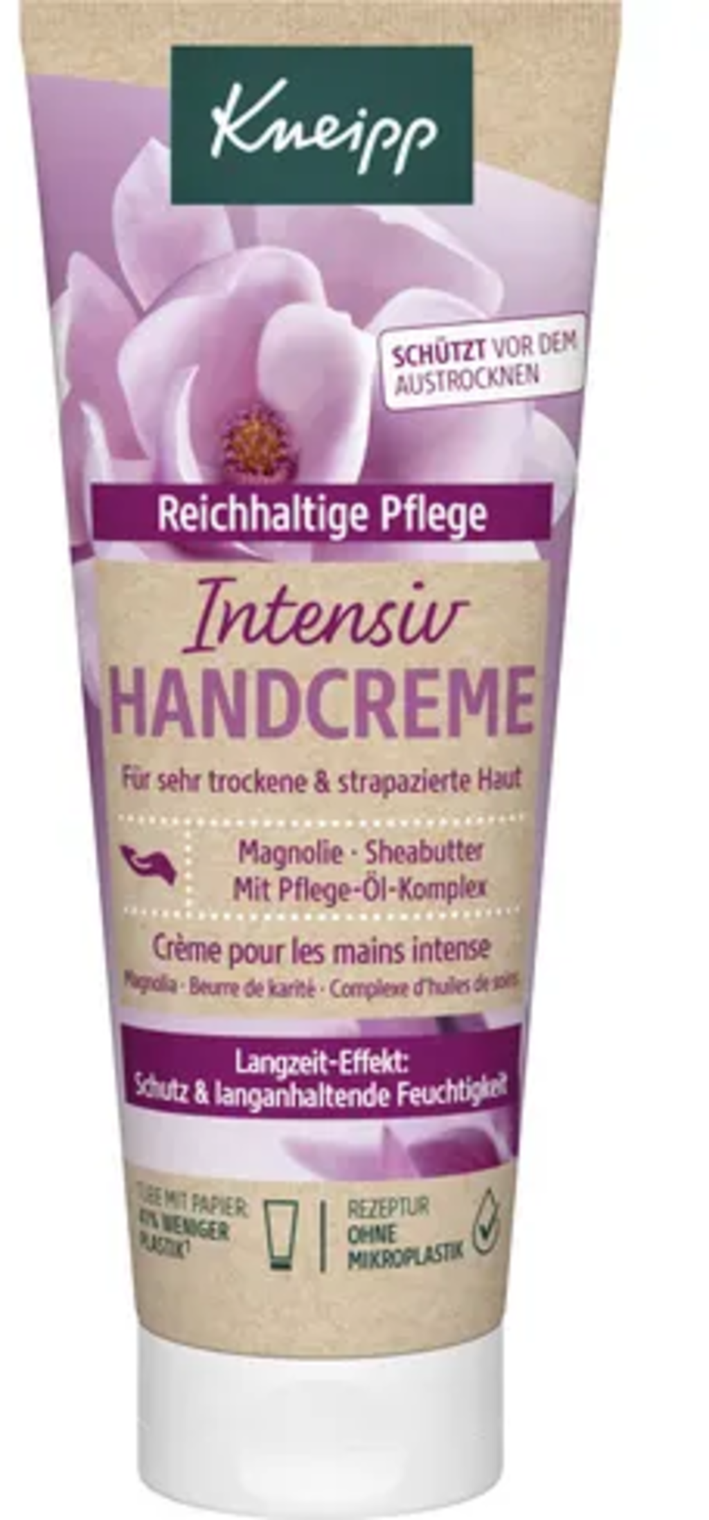 Prenez soin de vos mains sollicitées avec la Crème pour les Mains Intense aux Fleurs de Kneipp. Sa formule riche, composée d’extrait de magnolia et d’un complexe d’huiles nourrissantes à base de beurre de karité, d’huile d’amande et de panthénol, est rapidement absorbée et offre une hydratation longue durée.