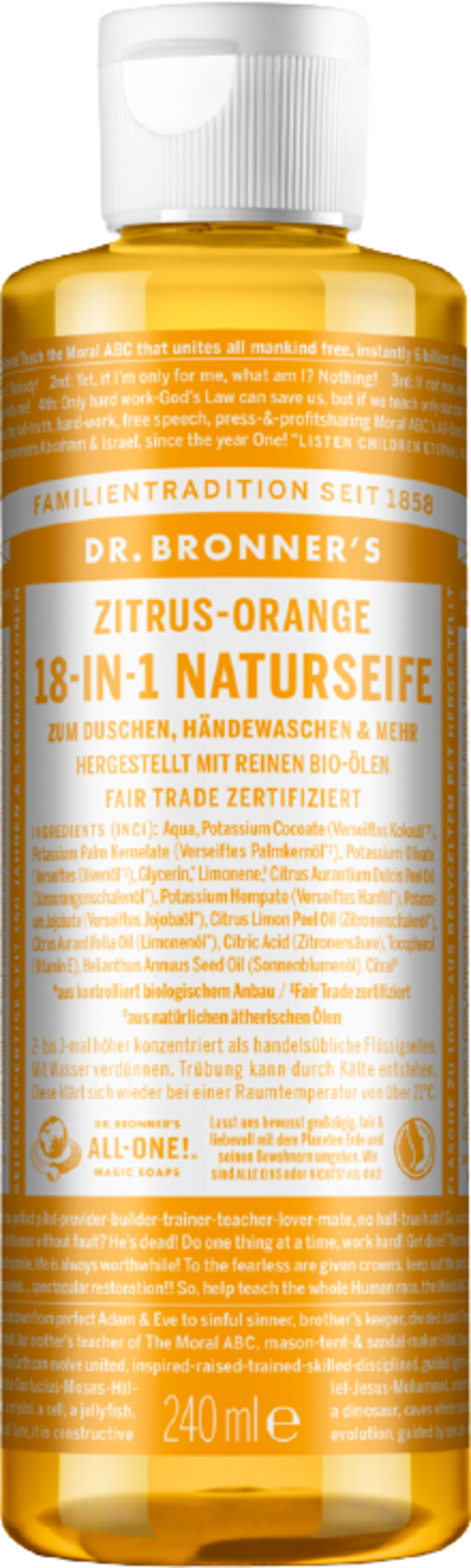 Dr. Bronner's 18in1 Natuurlijke Zeep Citrus-Sinaasappel, 240 ml