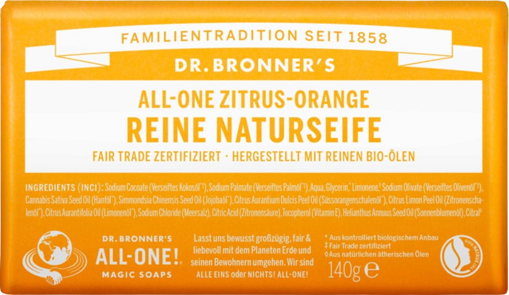 Dr. Bronner's Bar Soap Citrus-Sinaasappel, 140 g