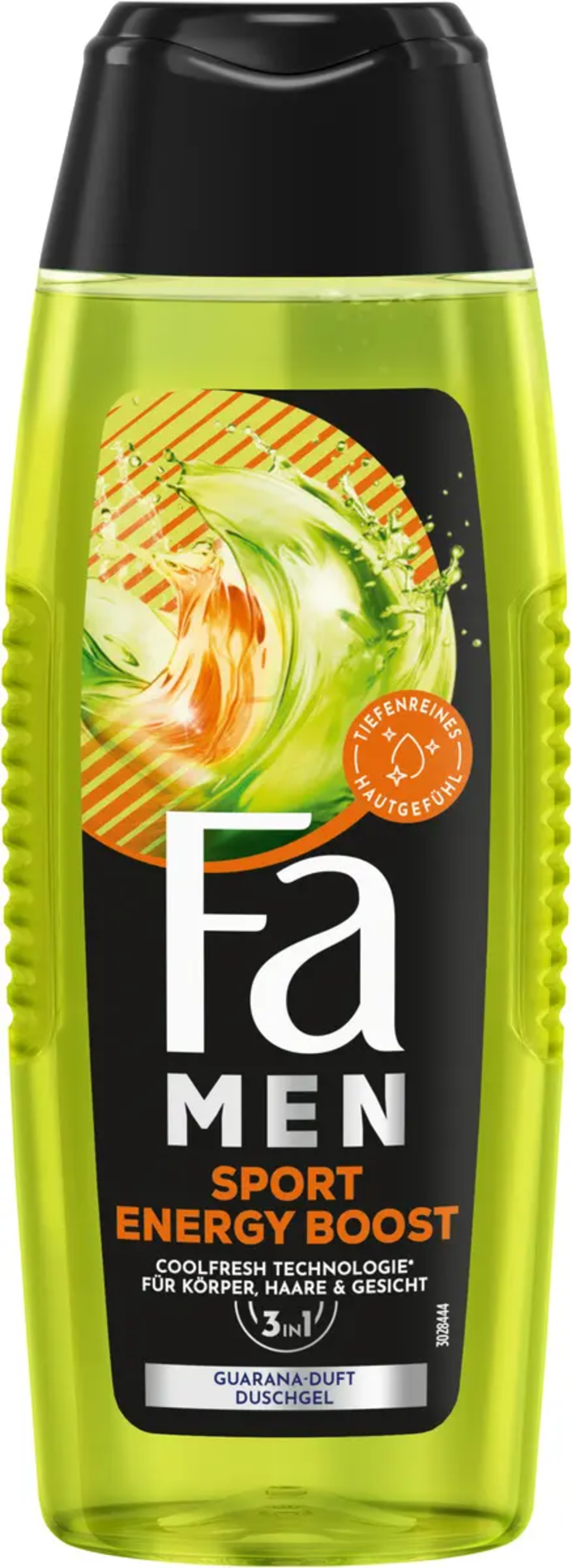 Verfrissende douchegel met 3-in-1 applicatie - de Fa Men Sport Energy Boost 3in1 Shower Gel voor lichaam, gezicht en haar. De milde, veganistische formule reinigt je huid op milde wijze en beschermt deze tegen uitdroging. 94% van de ingrediënten is van natuurlijke oorsprong.