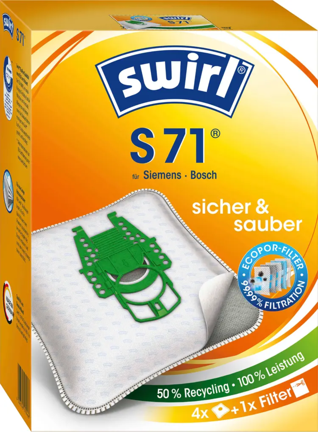 Swirl® EcoPor® stofzuigerzak S 71, 4 Stuks