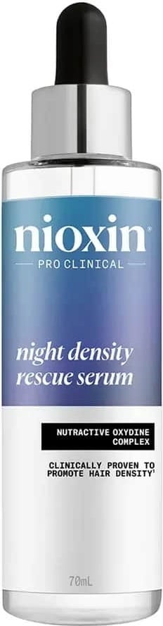 - Masseer 2 tot 4 druppels Night Density Rescue Serum direct in de hoofdhuid.